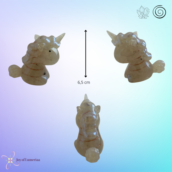 Elke eenhoorn bevat 95 gram kristallen en 24 cm koperspiraal.