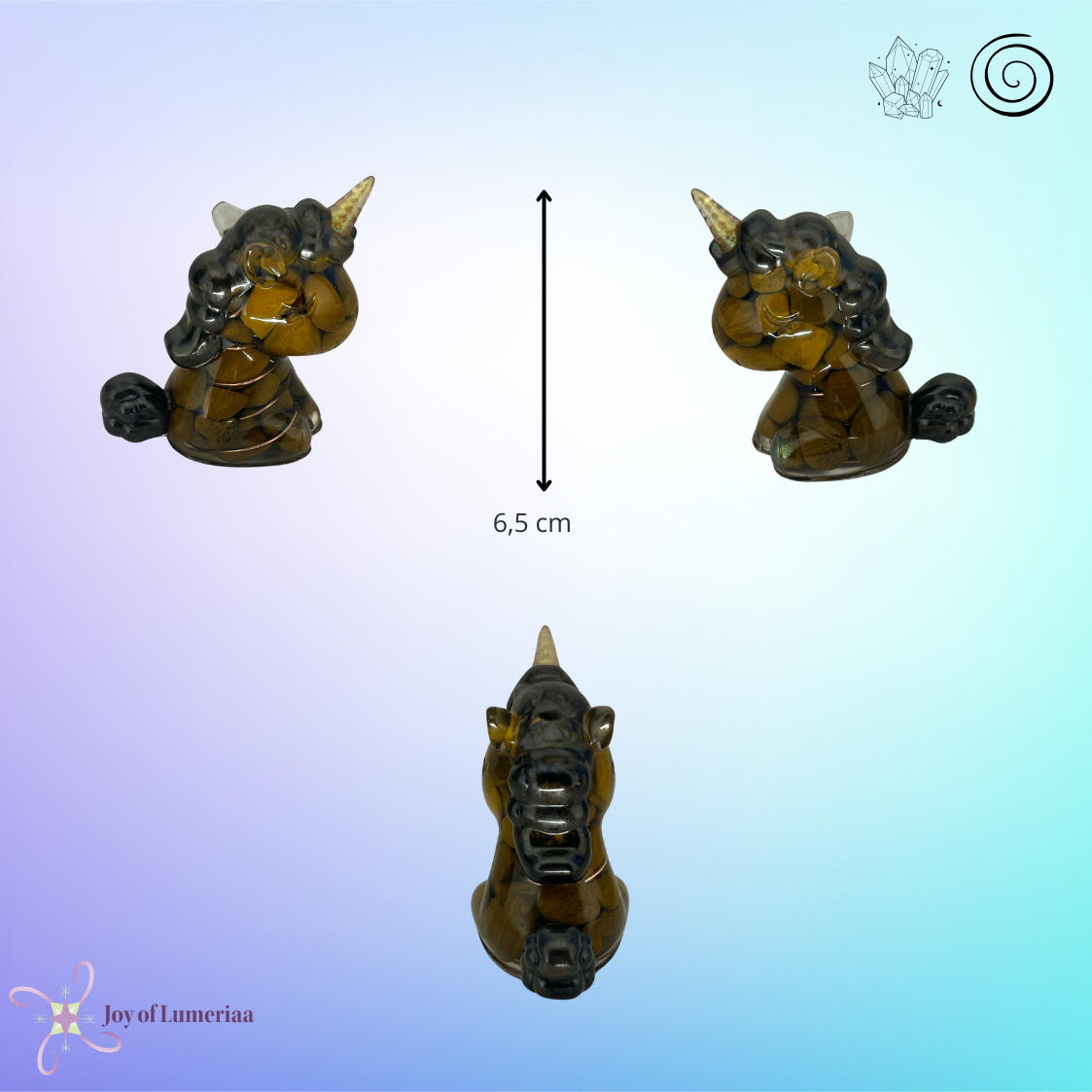 Elke eenhoorn bevat 95 gram kristallen en 24 cm koperspiraal.
