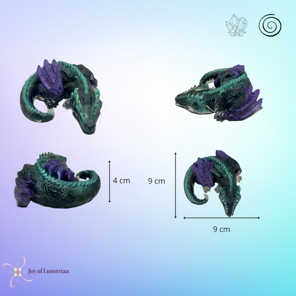 Elke draak bevat 130 gram kristallen en 3 koperspiralen van 12 cm of 1 koperpiraal van 36 cm.